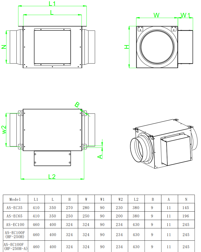 HOLTOP/AIRWOODS AS-EC35-1 előfűtő (1,1 kW, NA150 mm) CFA és AV-HTPF típusokhoz