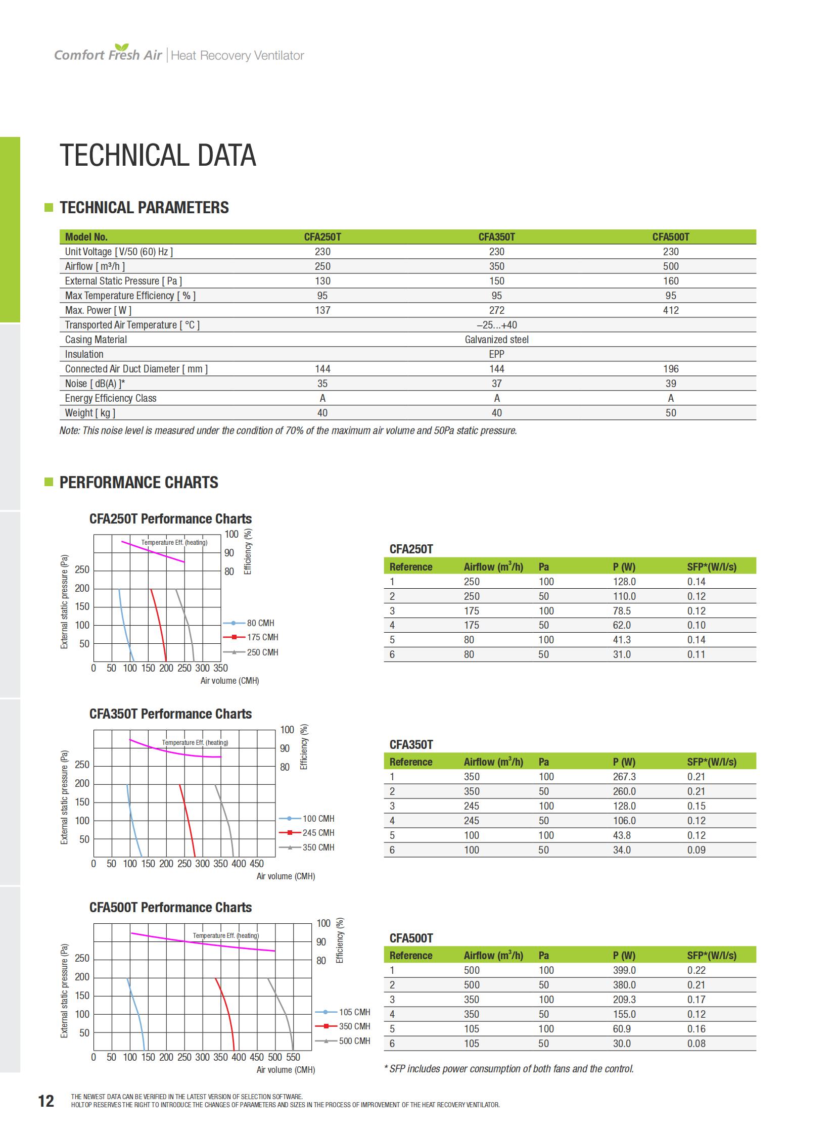 Az EC motorok állandó légáramlást biztosítanak, négy sebességfokozattal, miközben alacsony energiafelhasználással és mindössze 31–35 dB(A) zajszinttel működnek. A rendszer A vagy A+ energiahatékonysági osztályú, és akár -25 °C külső hőmérsékletig is biztosítja a stabil légcserét. A 100%-os automatikus bypass funkció a nyári hónapokban hűvösebb kültéri levegő esetén természetes szellőzést tesz lehetővé.
